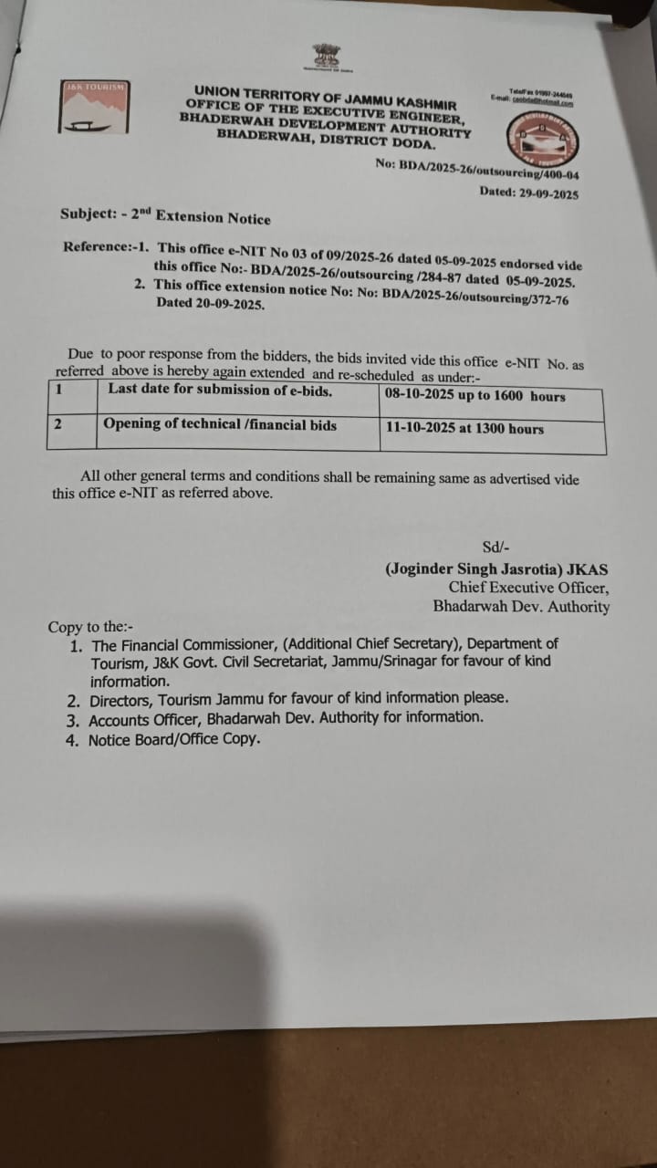 The J&K government has set up the Bhadarwah Development Authority (BDA) under the Prime Ministers Reconstruction Plan; to build tourism infrstructure in the area and a network of roads to make it easily accessible.